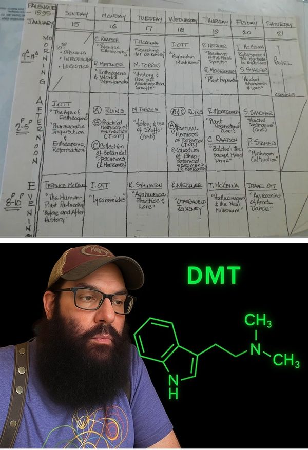 The arc that began in 1994 carried me into the jungle of Palenque in 1995 for the Entheobotany Conference, a watershed moment on my path. Surrounded by luminaries such as Terence McKenna, Jonathan Ott, Ralph Metzner, Christian Rǎtsch, Rob Montgomery, Stacy Shaefer, C. Manuel Torres, and Ken Symington, I felt both humbled and emboldened. This conference was my classroom and my podium: I learned from masters and also brought my own experiences to the circle.
